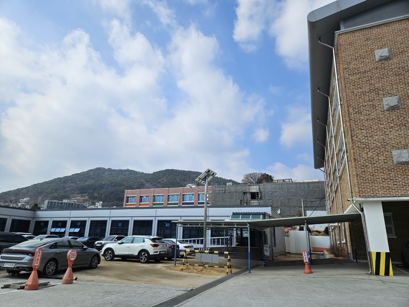 교사들의 주차로 점령당해 있어