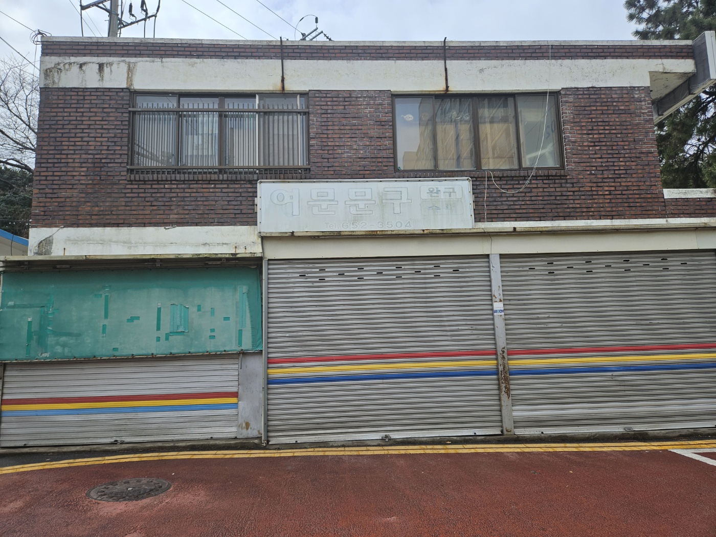 아주 얇은 두께의 문구점 건물이